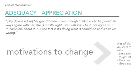 Contextual Observation: We conducted in-context interviews with a diverse mix of diabetic individuals ranging in age, experience, and treatment (pen/ pump/ syringe). We wanted to understand their holistic experience with diabetes, so the interviews covered a range of topics: diabetes onset, trajectory, current treatment, treatment/ device choices and drivers, goals, and challenges, and the emotional experience throughout.